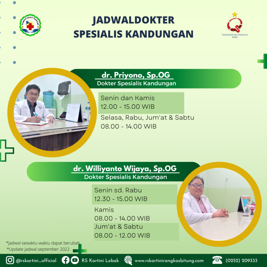 Jadwal Dokter Spesialis Kandungan dr. Priyono, Sp.OG dan dr. Wiliyanto Wijaya, Sp.OG